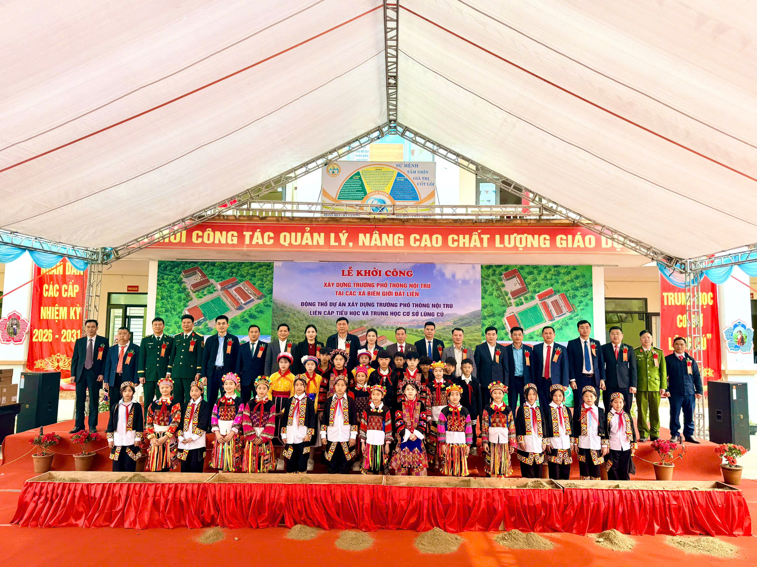 ĐỒNG CHÍ PHÓ BÍ THƯ THƯỜNG TRỰC TỈNH ỦY DỰ LỄ ĐỘNG THỔ DỰ ÁN XÂY DỰNG TRƯỜNG PHỔ THÔNG NỘI TRÚ LIÊN CẤP TIỂU HỌC VÀ THCS LŨNG CÚ