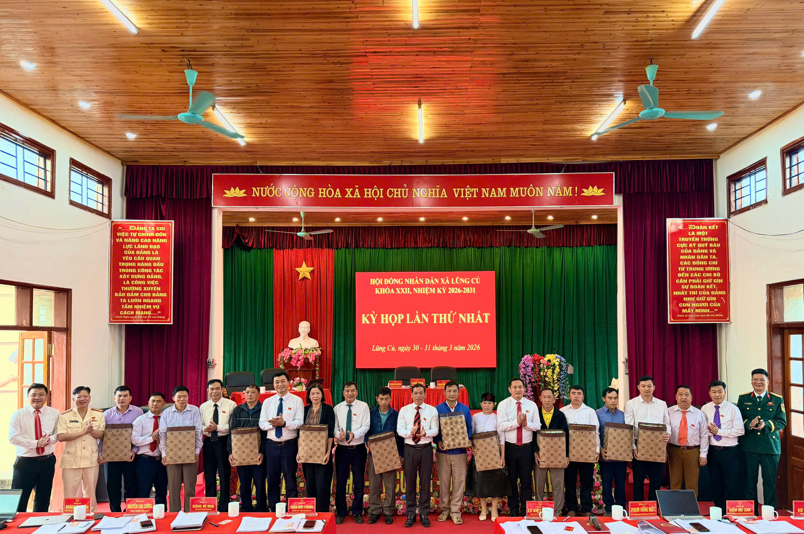 TTĐT - Ngày 26/03, Ủy ban bầu cử xã Lũng Cú đã tổ chức Hội nghị tổng kết công tác bầu cử Đại biểu Quốc hội khóa XVI và Đại biểu Hội đồng nhân dân các cấp nhiệm kỳ 2026 – 2031. Chủ trì Hội nghị có đồng chí Trần Đức Chung – Phó bí thư, Chủ tich UBND xã; đồng chí Cháng Văn Minh – Phó chủ tịch HĐND và đồng chí Vừ Sâu Pó – Chủ tịch Uỷ ban MTTQ xã. Dự hội nghị có đồng chí Dương Ngọc Đức – Bí thư Đảng uỷ, Chủ tịch HĐND cùng các đồng chí lãnh đạo Đảng ủy, HĐND, UBND, Ủy ban MTTQ xã; thành viên Ủy ban bầu cử xã cùng đại diện các tổ chức đoàn thể và các tổ bầu cử trên địa bàn.