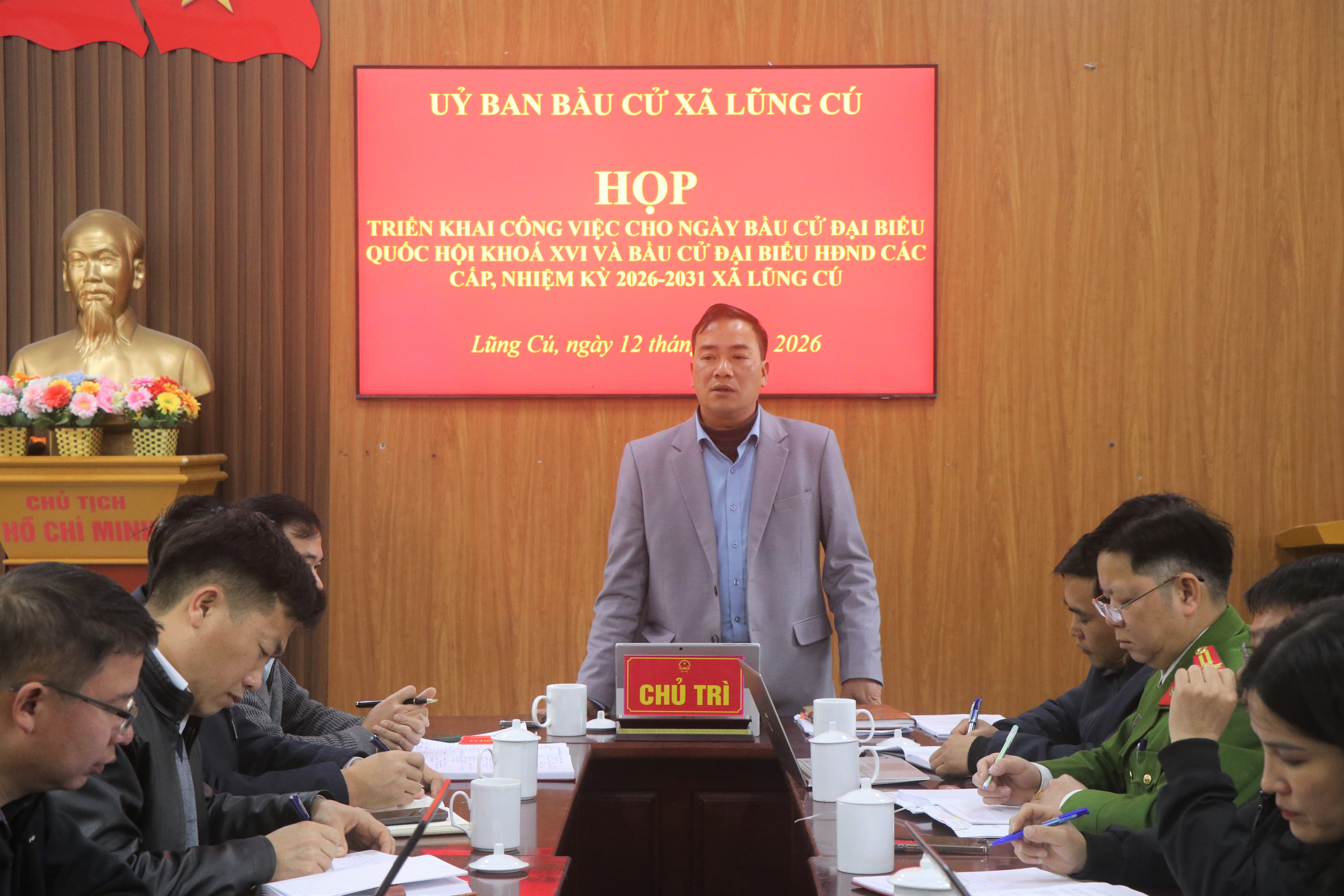 TTĐT - Chiều ngày 12/3, Ủy ban Bầu cử xã Lũng Cú đã tổ chức cuộc họp triển khai các nhiệm vụ chuẩn bị cho Ngày bầu cử đại biểu Quốc hội khóa XVI và đại biểu Hội đồng nhân dân các cấp, nhiệm kỳ 2026 – 2031. Dự và chủ trì cuộc họp có đồng chí Trần Đức Chung – Phó Bí thư, Chủ tịch UBND xã. Tham dự còn có các thành viên Ủy ban bầu cử xã, đại diện các ban, ngành, đoàn thể, lực lượng vũ trang trên địa bàn.
