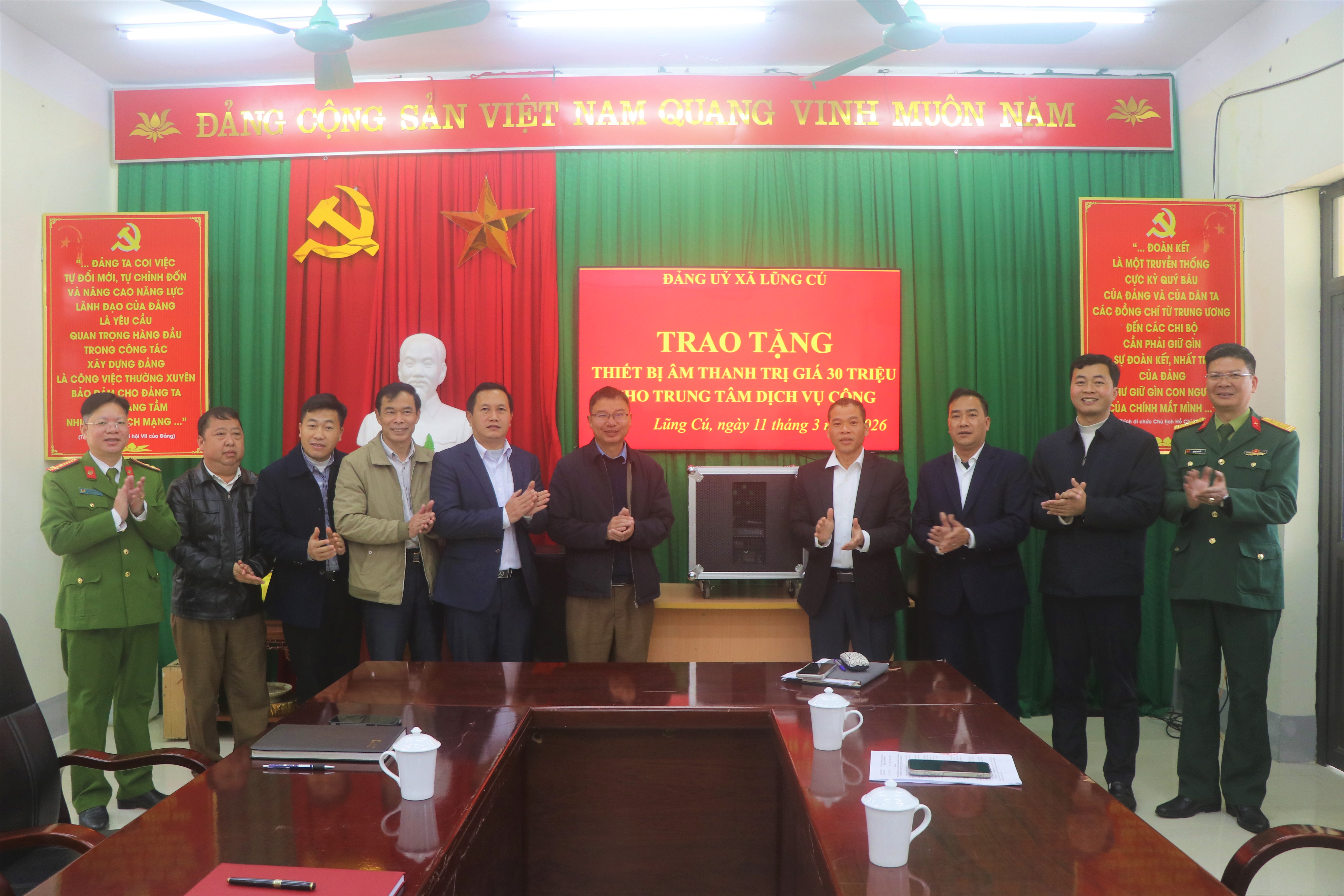 TTĐT - Sáng ngày 11/3, Đảng uỷ xã Lũng Cú đã tổ chức trao tặng bộ thiết bị âm thanh trị giá hơn 30 triệu đồng cho Trung tâm Dịch vụ công xã, nhằm nâng cao điều kiện làm việc, phục vụ tốt hơn nhu cầu của Nhân dân và các tổ chức khi đến giải quyết thủ tục hành chính.