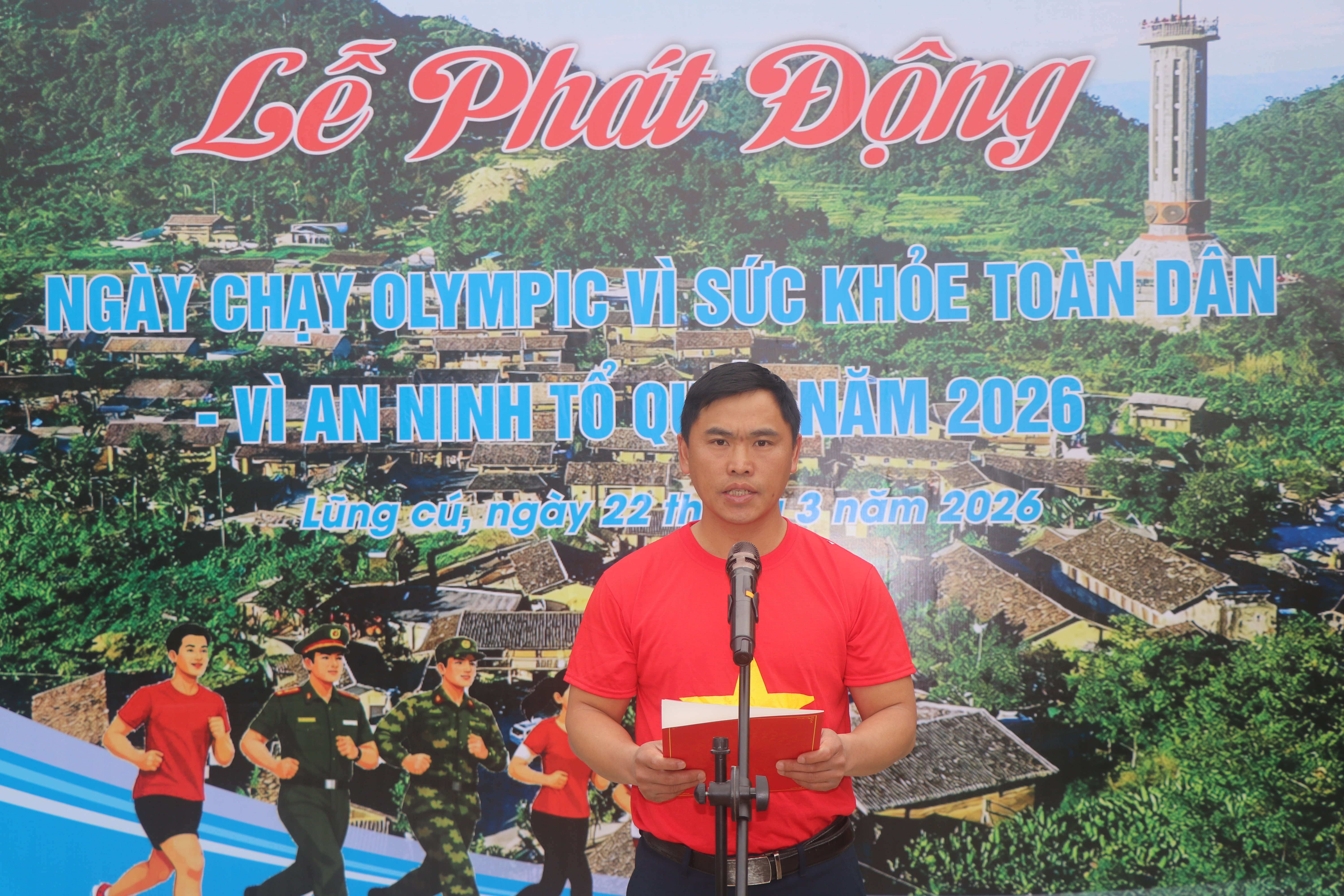 Phát biểu khai mạc, đồng chí Giàng Mí Mua - Phó Chủ tịch UBND xã Lũng Cú nhấn mạnh: lễ phát động Ngày chạy Olympic vì sức khỏe toàn dân – Vì an ninh Tổ Quốc năm 2026 là một trong những hoạt động có ý nghĩa thiết thực của xã nhằm tuyên truyền nâng cao nhận thức về vai trò tác dụng của việc tập luyện thể dục, thể thao trong bảo vệ nâng cao sức khoẻ, chất lượng cuộc sống của người dân, xây dựng lối sống, môi trường lành mạnh, góp phần xây dựng khối đại đoàn kết dân, vận động mọi người dân tự chọn môn thể thao phù hợp để tập luyện hằng ngày nhằm tạo thói quen tập luyện thể thao.
