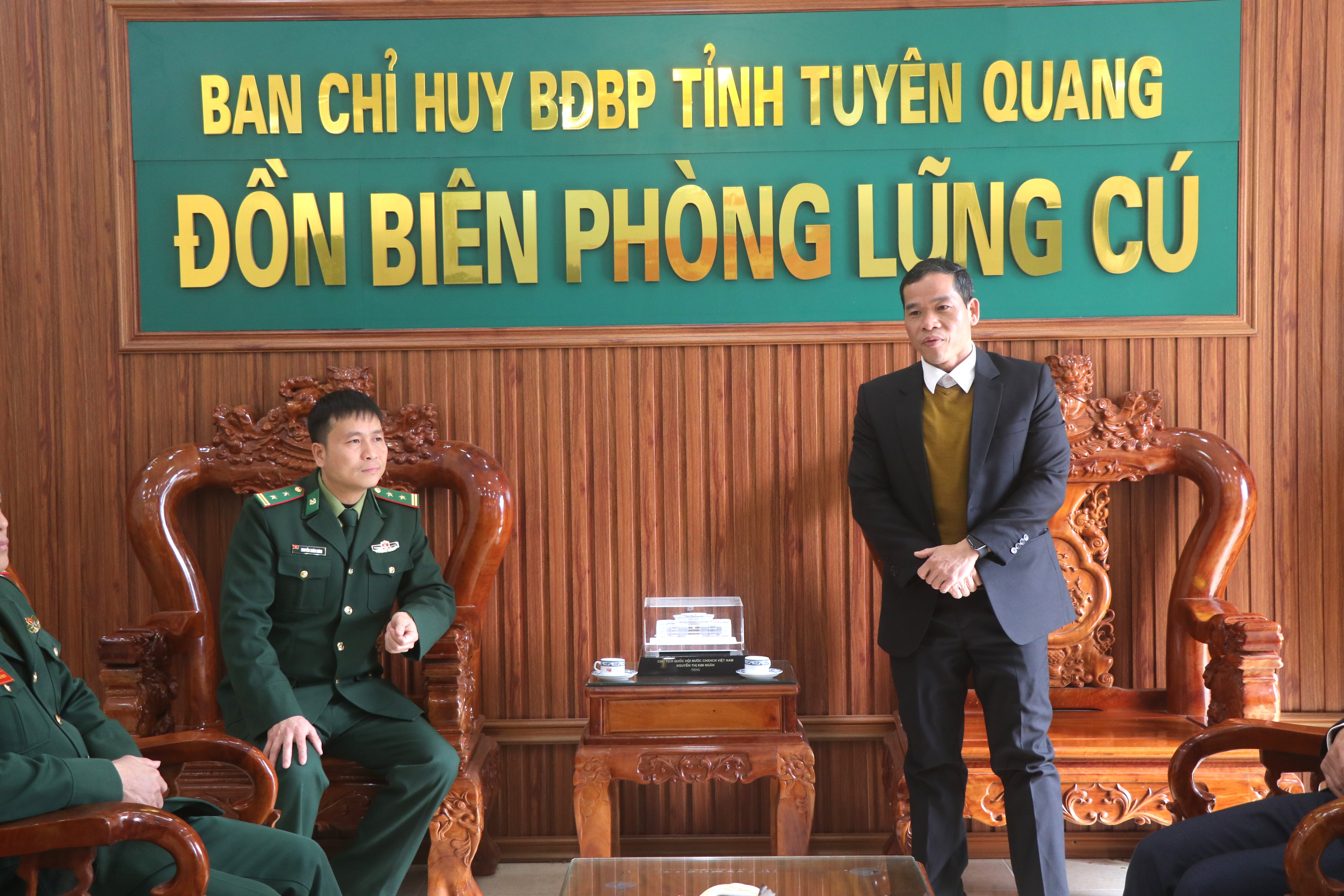 Các đồng chí lãnh đạo xã Lũng Cú gửi lời chúc mừng năm mới tới cán bộ, chiến sĩ Đồn Biên phòng xã Lũng Cú