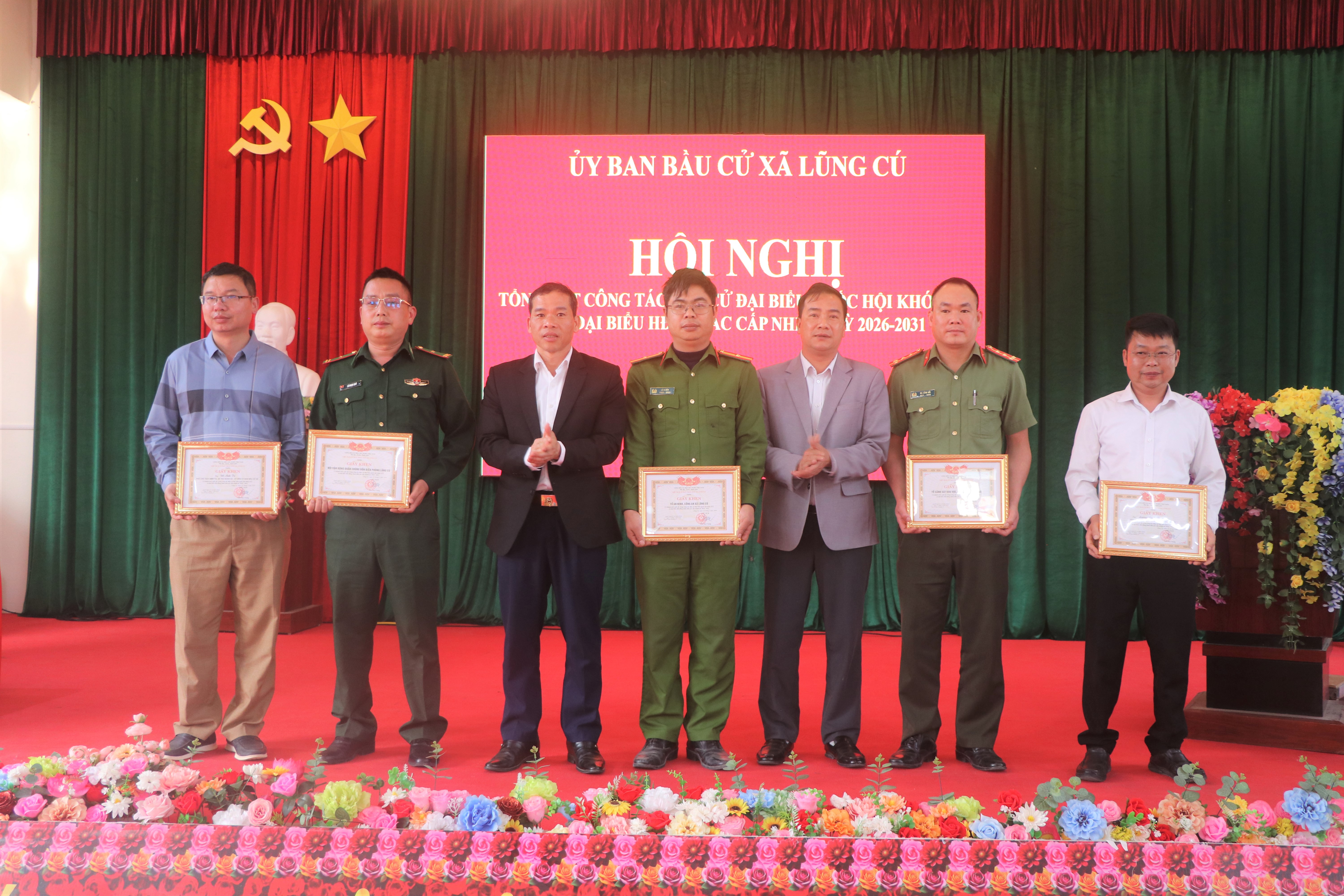 Nhân dịp này, UBND xã Lũng Cú đã tặng giấy khen của Chủ tịch UBND xã cho 05 tập thể và 36 cá nhân có thành tích xuất sắc trong công tác bầu cử; Đồng thời trao giải thưởng thi đua cho các ban bầu cử có thành tích tiêu biểu trong công tác bầu cử Đại biểu Quốc hội khoá XVI và Đại biểu HĐND các cấp nhiệm kỳ 2026 – 2031. Ban bầu cử số 02 đâ xuất sắc giành giải nhất trong cuộc thi đua.