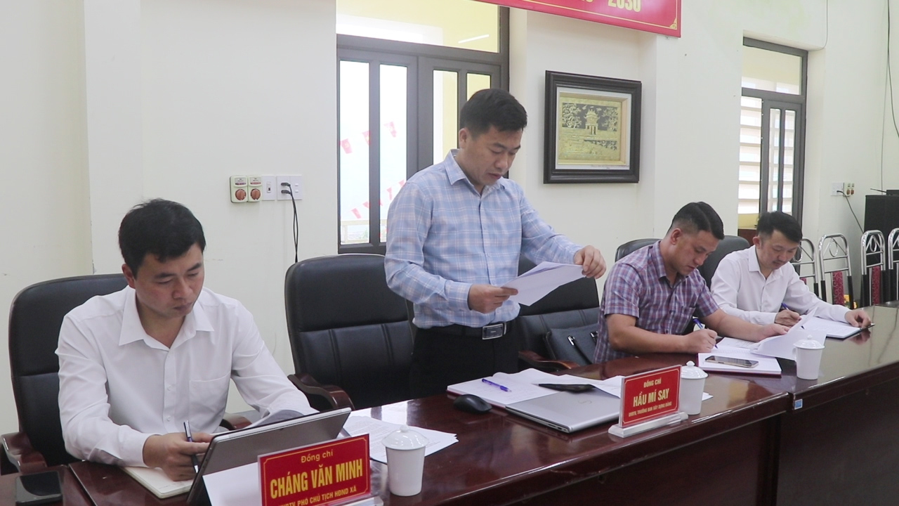 Đồng chí Dương Ngọc Đức - Bí thư Đảng uỷ, Chủ tịch HĐND xã Lũng Cú quán triệt một số nội dung trong tâm tại phiên họp