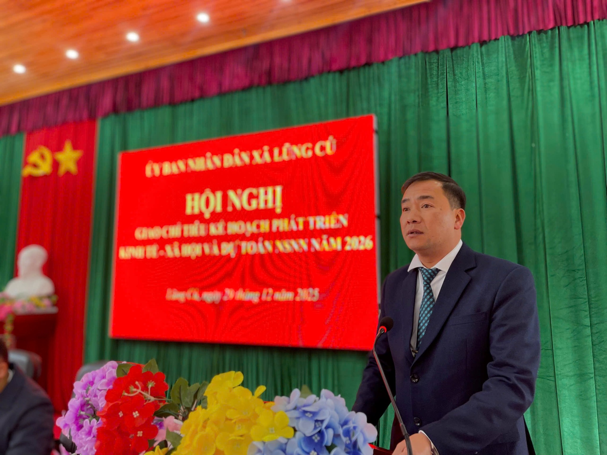 Kết thúc hội nghị, UBND xã Lũng Cú đã phát động và tổ chức ký kết giao ước thi đua thực hiện các chỉ tiêu, nhiệm vụ phát triển kinh tế – xã hội năm 2026 giữa Thường trực UBND xã với các phòng ban chuyên môn, tạo khí thế thi đua sôi nổi ngay từ đầu năm mới.