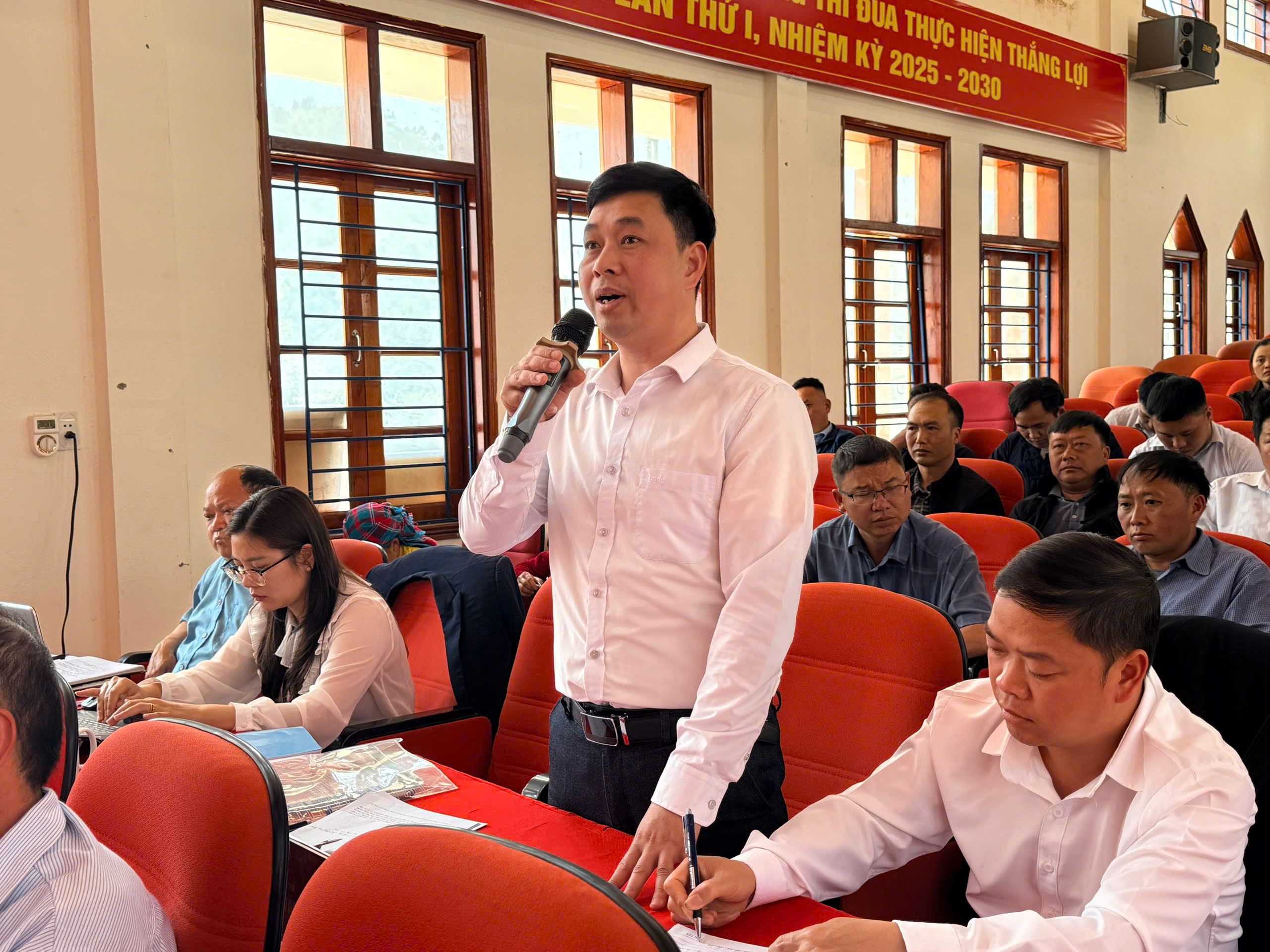 Đồng chí Dương Ngọc Đức - Bí thư Đảng uỷ, Chủ tịch HĐND xã Lũng Cú phát biểu khai mạc hội nghị