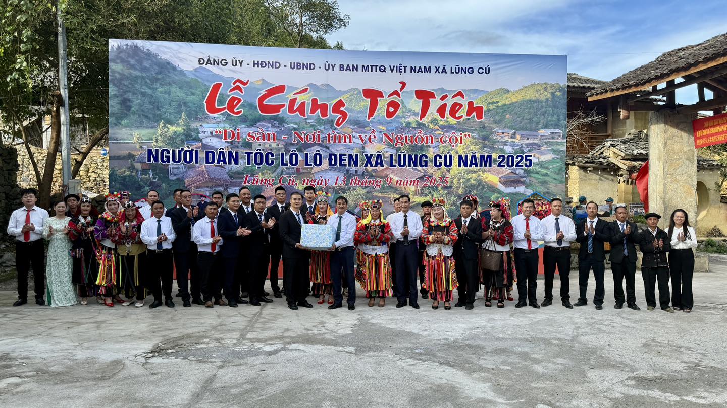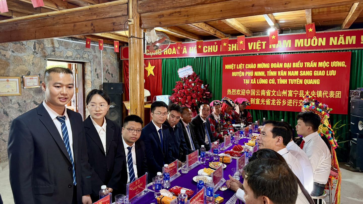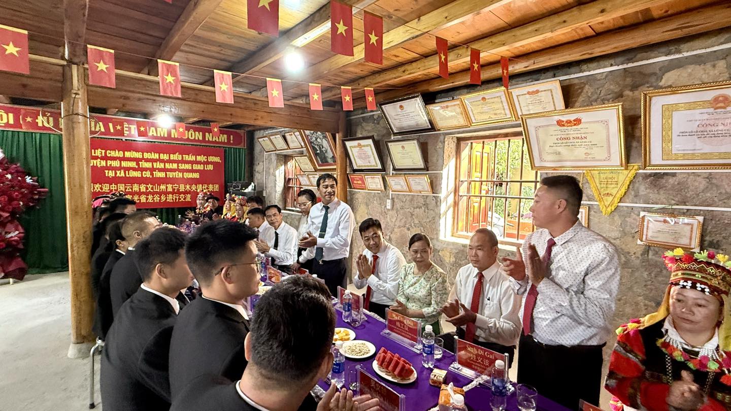 Chiều ngày 12/9/2025, trong không khí chuẩn bị cho Lễ cúng tổ tiên của dân tộc Lô Lô Đen (diễn ra vào ngày 13/9), ông Trần Đức Chung - Phó Bí thư Đảng ủy, Chủ tịch UBND xã Lũng Cú đã chủ trì buổi tiếp xã giao Đoàn đại biểu trấn Mộc Ương, huyện Phú Ninh, châu Văn Sơn, tỉnh Vân Nam (Trung Quốc). Dẫn đầu đoàn đại biểu phía bạn là ông Dương Thắng Mẫn - Phó Bí thư, Trưởng trấn Mộc Ương.
