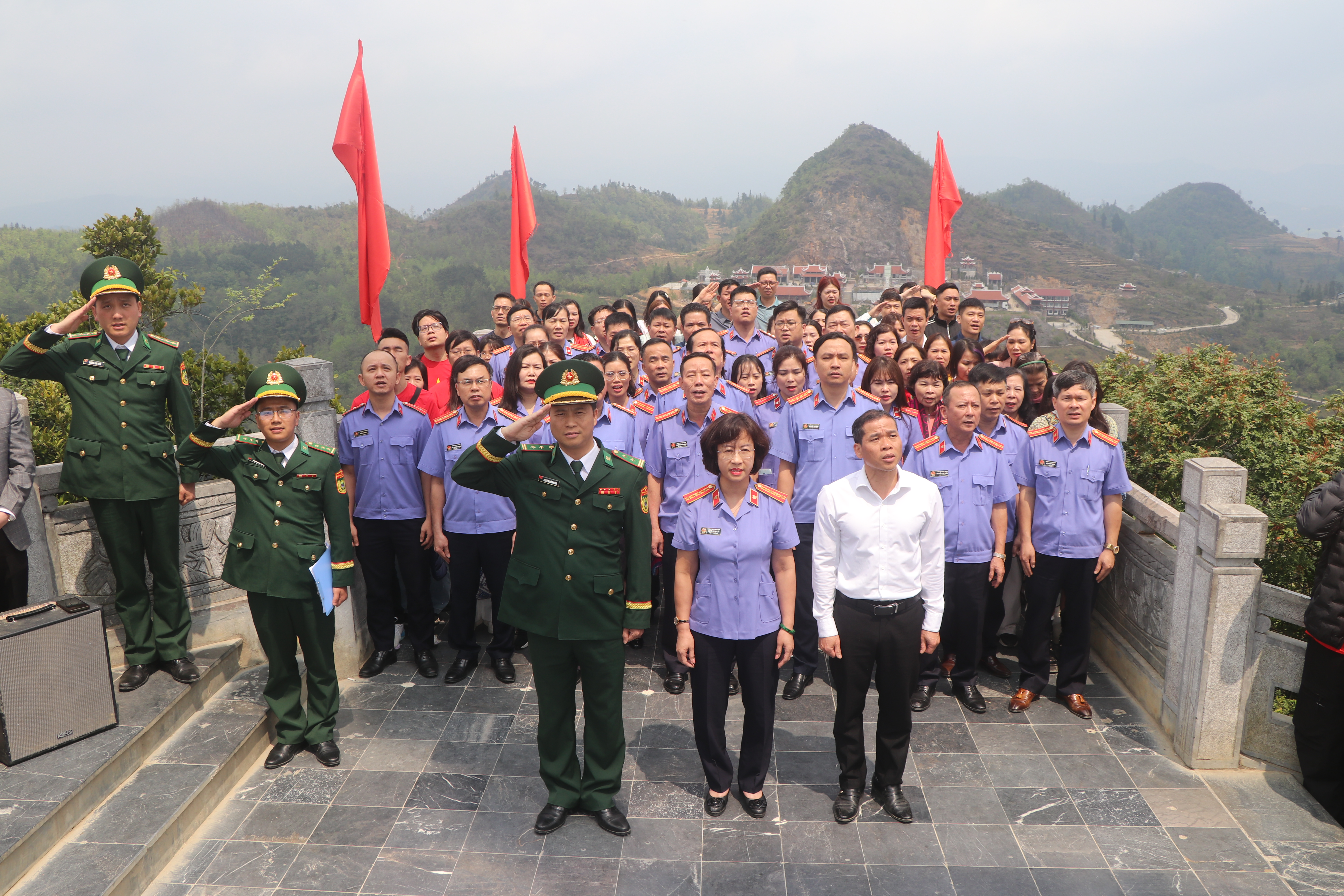 Cũng trong chương trình, đoàn công tác đã tổ chức trồng cây sa mộc tại khu vực điểm cực Bắc thuộc xã Lũng Cú. Dịp này, cán bộ, chiến sĩ Đồn Biên phòng Lũng Cú đã trao tặng đoàn lá cờ Tổ quốc từng được treo trên Cột cờ Quốc gia Lũng Cú – biểu tượng thiêng liêng nơi địa đầu Tổ quốc. Đây là món quà ý nghĩa, góp phần bồi đắp thêm niềm tự hào, trách nhiệm của mỗi cán bộ ngành kiểm sát đối với sự nghiệp bảo vệ pháp luật và chủ quyền quốc gia.