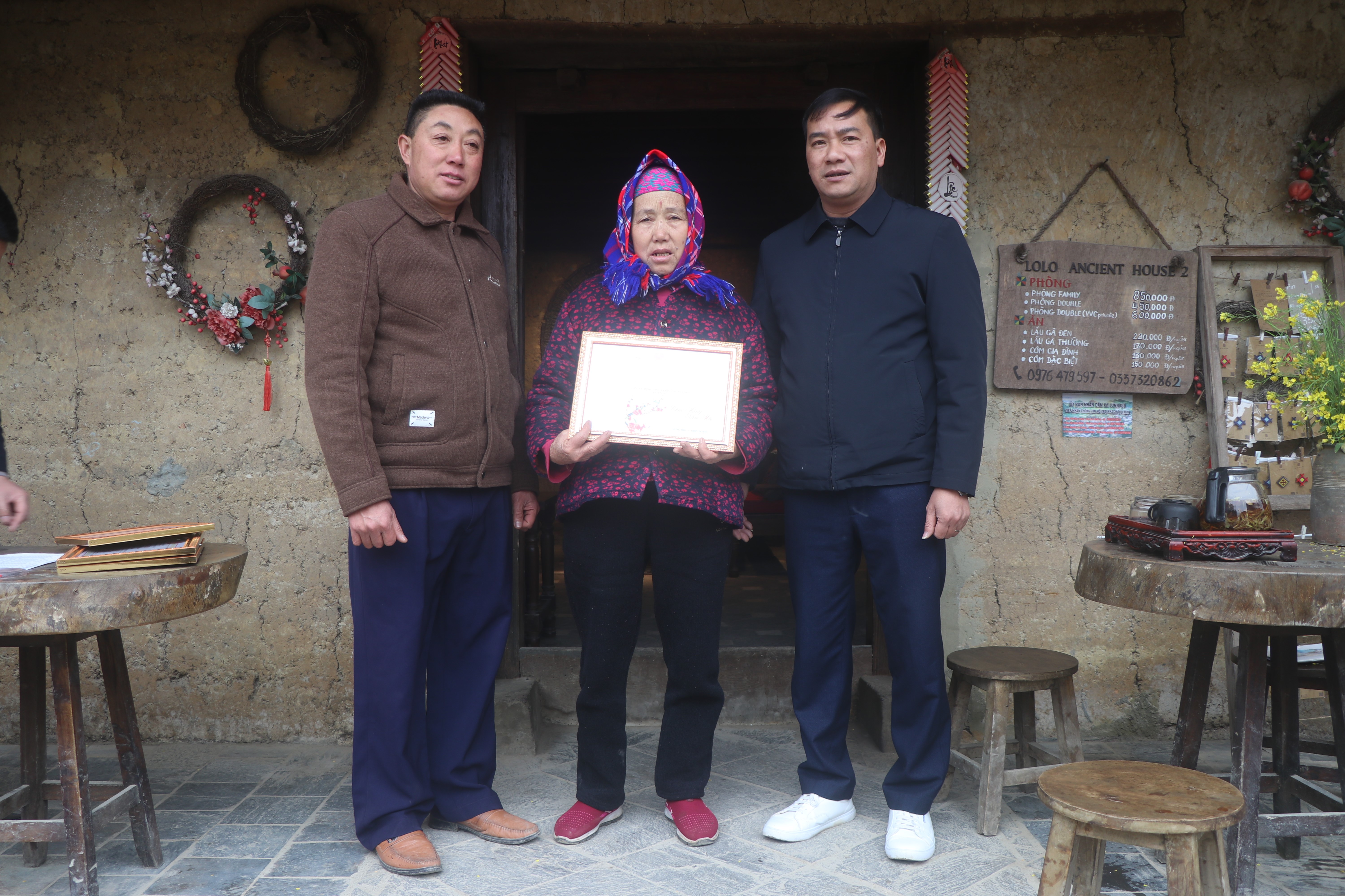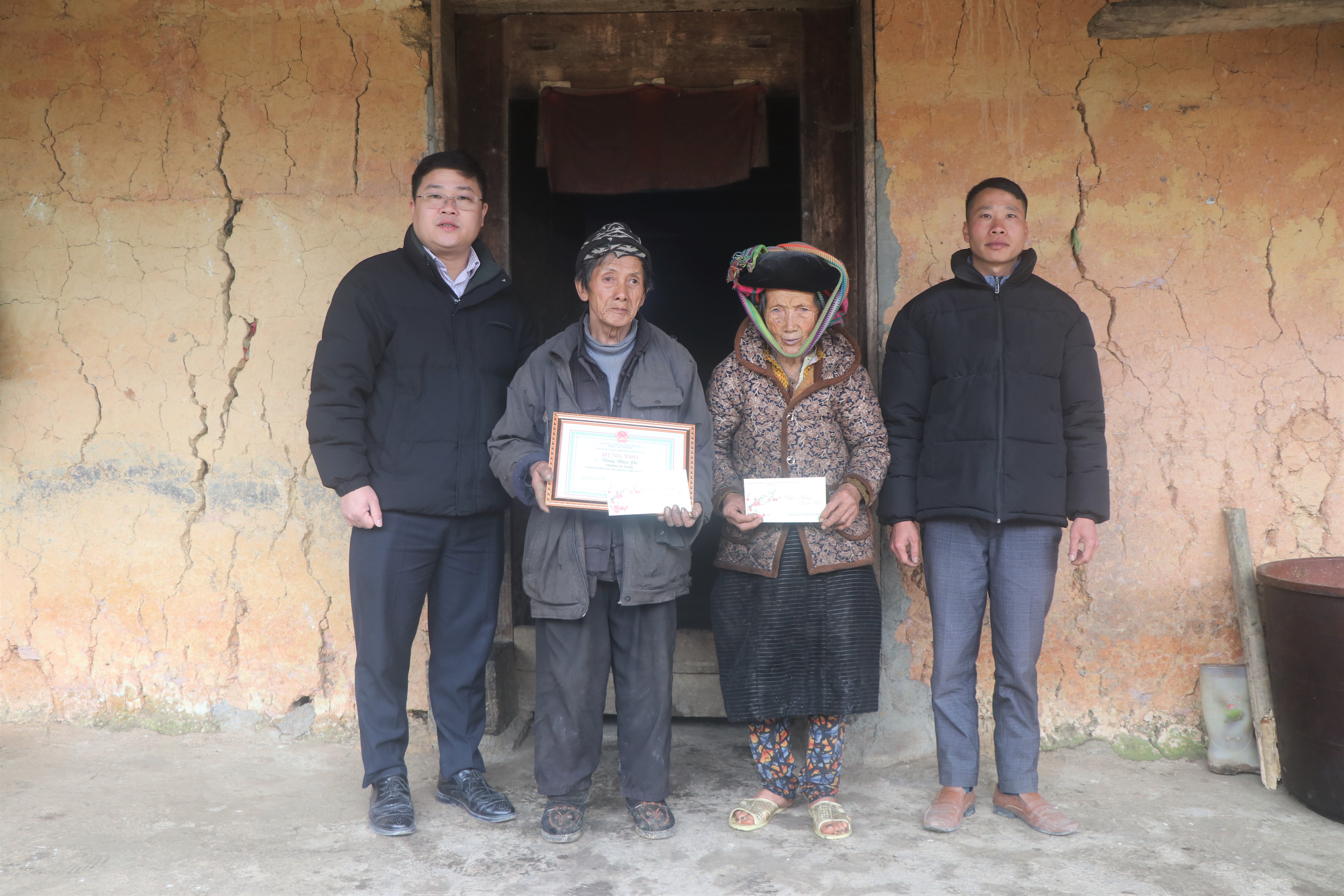 Đồng chí Trần Đức Chung - Phó Bí thư, Chủ tịch UBND xã Lũng Cú mừng thọ các cụ cao niên tại thôn Lô Lô Chải