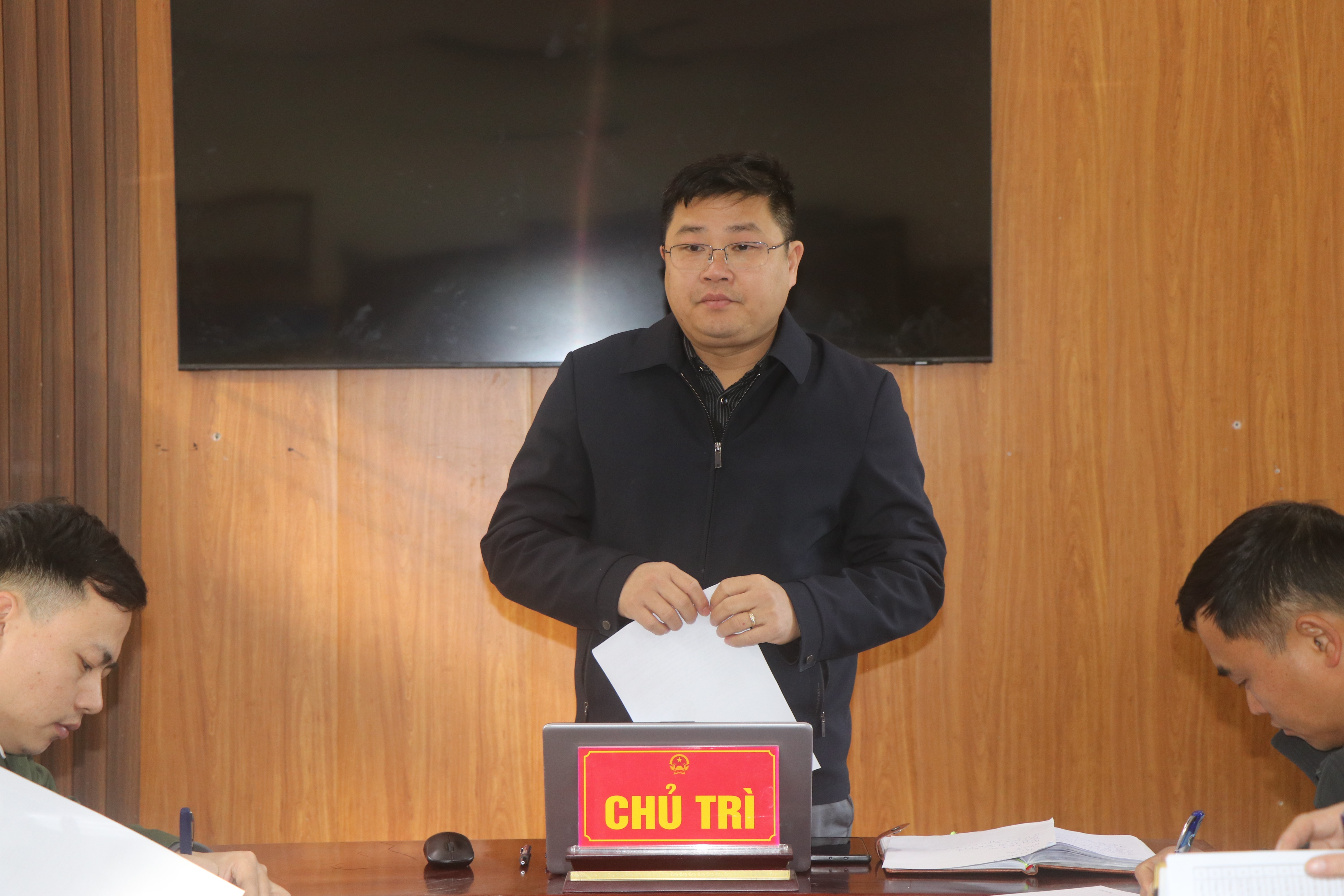 Đồng chí Ma Doãn Khánh - Phó chủ tịch UBND xã Lũng Cú phát biểu tại cuộc họp