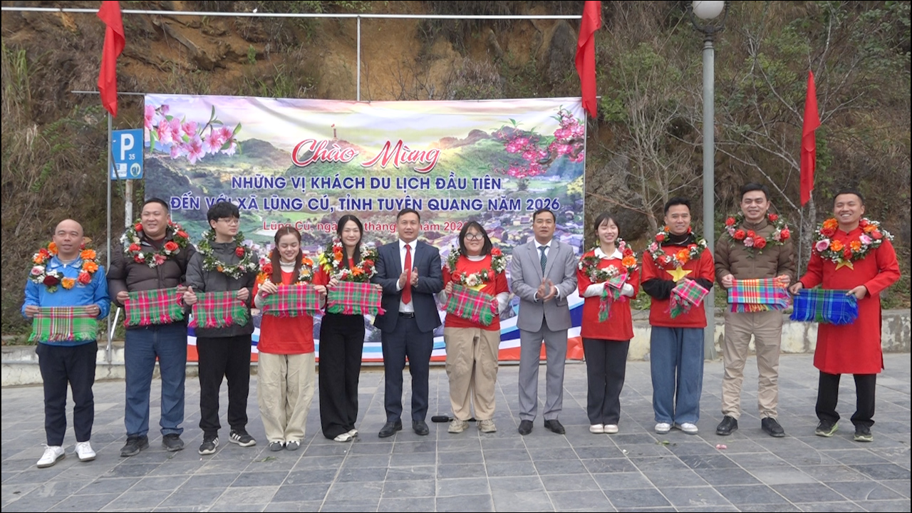 TTDDT - Sáng đầu năm mới 2026, xã Lũng Cú đã vui mừng đón những vị khách du lịch đầu tiên đến tham quan, trải nghiệm tại Cột cờ Quốc gia Lũng Cú. Trong không khí phấn khởi của những ngày đầu xuân, chính quyền địa phương, người dân và các đơn vị làm du lịch đã dành sự đón tiếp chu đáo, thân thiện, để lại ấn tượng tốt đẹp trong lòng du khách.